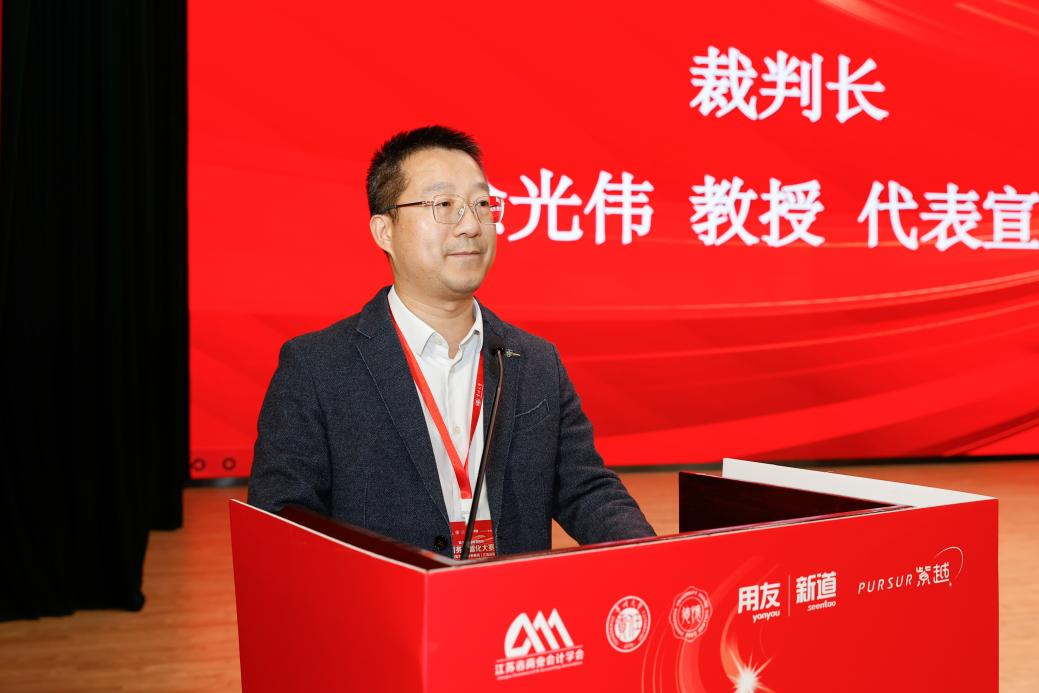11月28日下午,大赛拉开帷幕,江苏省商业会计学会常务副会长刘正兵,常州大学党委常委、副校长杨琳,新道科技股份有限公司江南区总经理兼江苏分公司总经理任子宜、常州大学怀德学院、商学院相关负责人参加开幕式,商学院党委书记龙涌澜主持开幕式。